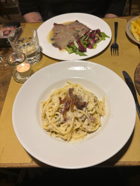 10/10Best carbonara and tiramisu in roma. Owner was very attentive and welcoming. Great ambience