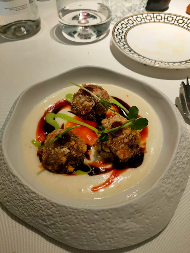 2/10I was there for dinner with 10 minutes late. My reservation was with 20% off. I have been there with my gf for a romantic and amazing dinner with huge expectations. The only good comment i can leave was the waiter with blue eyes super educated and working super well. I am a restaurant and hotel owner So i know what i am saying. Received the bill without discount. Reservation cancelled on the fork to avoid to pay commission to the website. I don’t know how Michelin has it on the guide. Food wasn’t terrible but let’s say average. The flavours of dishes was all mixed, and when you go to these kind of restaurants you should have explosions of tastes. I think there are tons of things to revisit. From service to plates. Mostly you can’t close a restaurant and start mopping the floor while people are still eating. Horrible.
