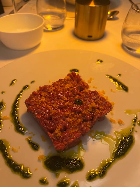 9.5/10+1Wonderful red prawn and egg on truffle toast starters. Delicious primi of squid ink linguine and spaghetti with sea urchin. Secondi a superb melt in the mouth beef cheek. Good service and nice to meet Chef Angelo.