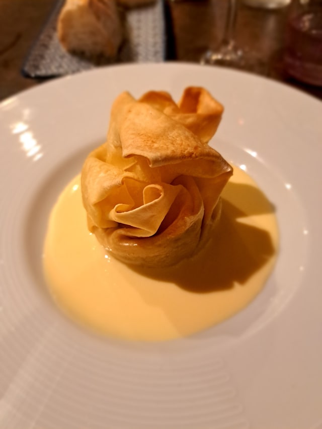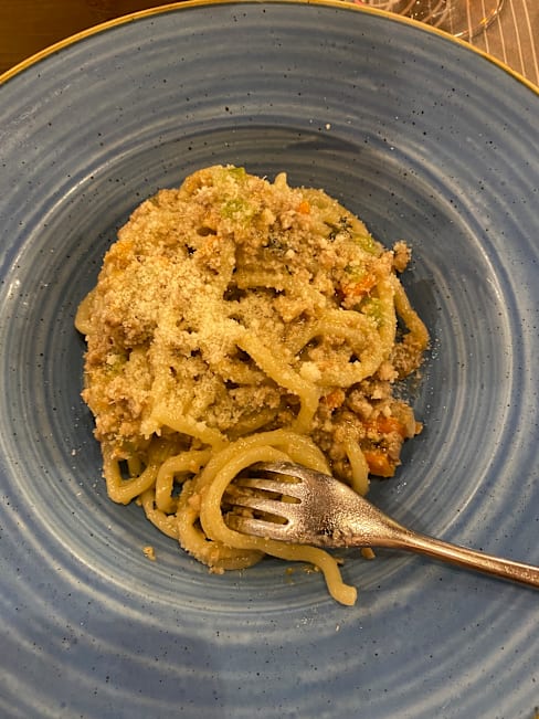 5/10Restaurant was surprisingly quiet ( which obviously didn't help the ambiance), and after some guidance from our very nice waitress, my wife chose a fish pasta dish. Starter was OK ( not amazing) and although my meat tagliatelle was OK (nothing special) my wife's pasta was inedible, due to it bring incredibly salty. Our waitress noticed that my wife wasn't eating her pasta and asked if it was OK snd my wife told her it was way too salty to eat. There was no offer to replace her pasta dish and no allowance made to our quite expensive €95 lunch!!