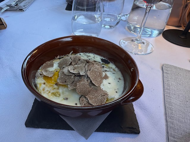 10/10+1We went there after visiting Alba! It's small, but the food is excellent! The drinks are affordable and delicious, and the service was great! It was also helpful for us that they spoke English! The chef even served us a complimentary grappa at the end! It's a rural restaurant, but it's a great restaurant!