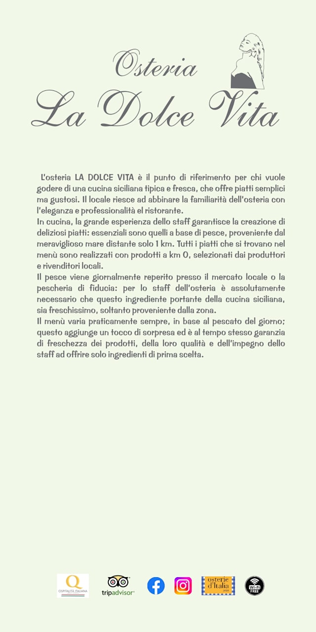 10/10Osteria Dolce Vita is an absolute gem in the heart of Trapani. From the moment you walk in, you are welcomed with warmth and genuine Sicilian hospitality. The atmosphere is charming and relaxed, blending rustic elegance with a cozy, intimate vibe. The menu highlights the best of local ingredients, prepared with passion and creativity. Every dish — from the perfectly cooked seafood to the rich, flavorful pastas — reflects an authentic connection to the region’s culinary traditions. The wine selection complements the menu beautifully, offering a thoughtful range of Sicilian and Italian labels. Service is outstanding: attentive, knowledgeable, and genuinely friendly without ever feeling intrusive. You can tell the team takes real pride in what they do. Osteria Dolce Vita is a must-visit for anyone looking to experience true Sicilian flavors in an unforgettable setting. Highly recommended.
