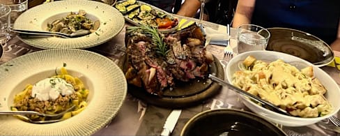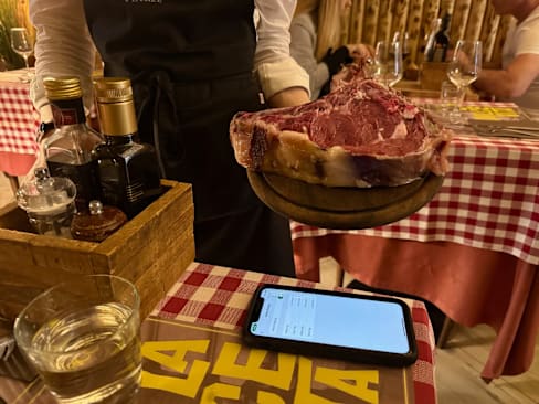7.5/10Disappointed with the bistec fiorentina. Purchased the high end cut at 1.7kg (priced per 100 g). No marbling and a huge fat cap. Some tough parts to chew through on the strip side. Cute place and the caccio e pepe was good.