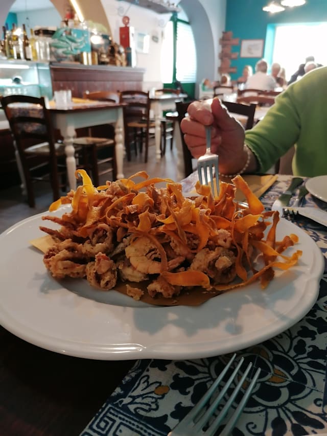 Totani, gamberi, acciughe, misto di paranza, verdure di stagione (*glutine, crostacei, pesce) **puo' variare a seconda del pescato