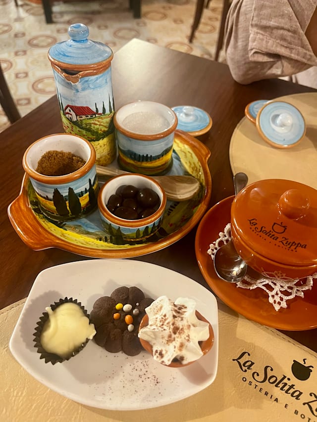 10/10There is so much to say about this wonderful Osteria. The owner is passionate about sharing ancient recipes from the region that are unique and unexpected. They include the best ingredients! The wine list is extensive. Desserts were all amazing! We are here twice during our three-night stay in Chiusi and I hope to return in the future if I am lucky enough to visit Italy again.