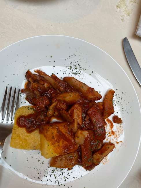 5/10Admittedly it was early evening, but always a little worrying when there’s no one else eating in the restaurant as you approach. Obviously they sat us in the window to try to make it look busier, but the waiter was polite and attentive so we hoped for the best. Unfortunately, the food was not great..we had gnocchi to start in a Gorgonzola sauce which was ok, but the mixed grill I had consisted of tough pork chop, a small fatty steak, a sausage meat steak with gristley bits, and a piece of grilled chicken breast which was the best of it. Vegetables were all a bit bland and overcooked. My wife’s tagliatelle was ok but not very big. The tiramisu was fairly good for desert, and wine was ok but overpriced for what it was. The bill came with no fork discount, but was still far too high when corrected for the quality of food. My advice would be to stay clear, as there are much better restaurants in Venice.