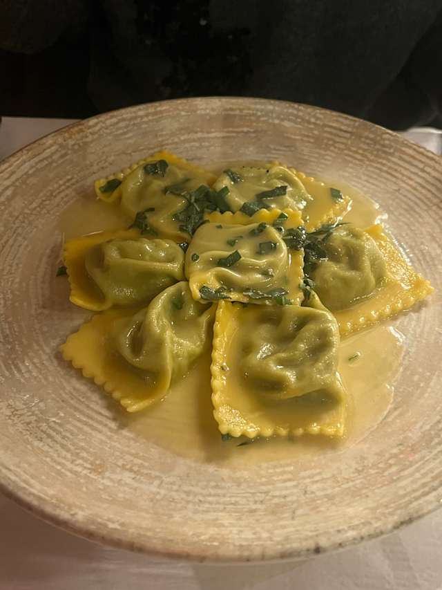 - Ravioli filled with ricotta and spinach in a butter and sage sauce