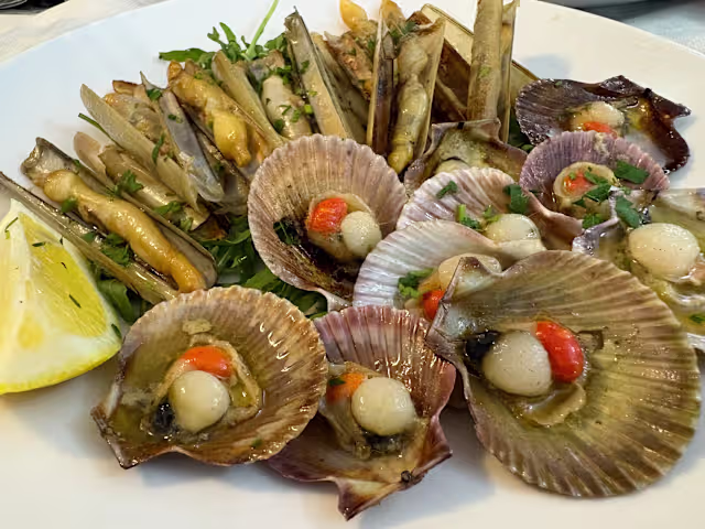- Capesante, gamberi e bottarga