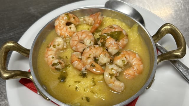 - Polenta e *gamberi al vino bianco, prezzemolo e peperoncino