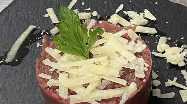 - Tartare di manzo (gr.100) con scaglie di grana padano