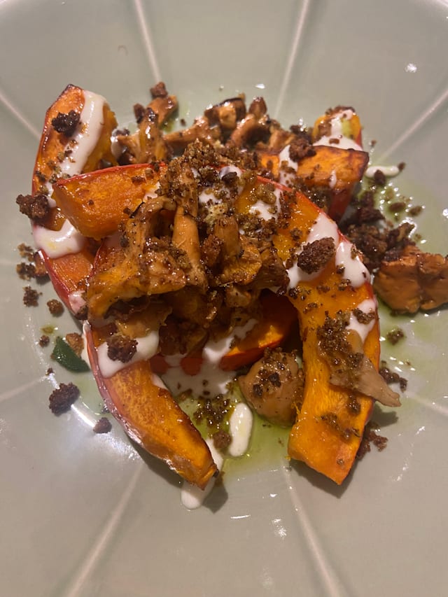 Zucca hokkaido, fungo rosolato, fonduta di pecorino e tartufo