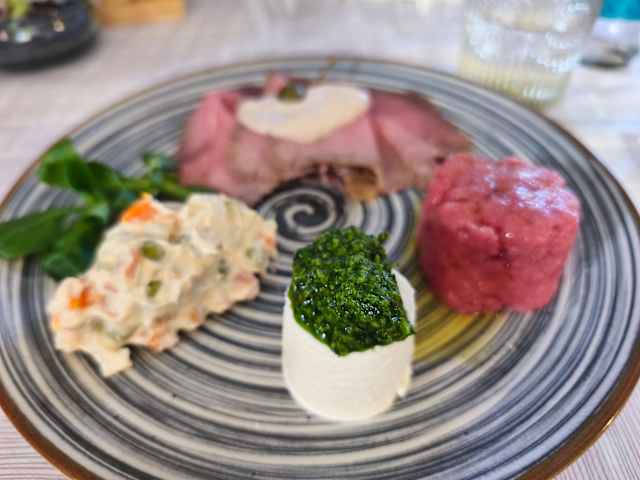 - Girello di vitello cotto a bassa temperatura con salsa tonnata e fiore di cappero