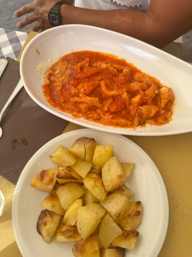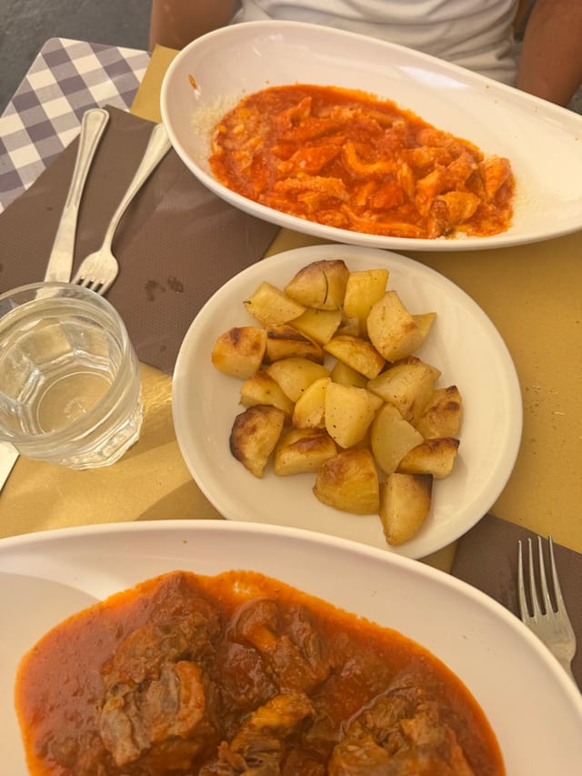 6.5/10Overall, an ok place for lunch after visiting the colosseum. The food is good and the staff are prompt. The waiters hustled to find us a table. Unfortunately, they also hustled us when we were paying by asking for a tip. I’m unsure if it was because we’re Americans, or if this restaurant has a different business model than the majority of Italian restaurants. I’m not opposed to tipping for good service in Europe, but having staff ask patrons for a tip is tacky and takes away from the experience.