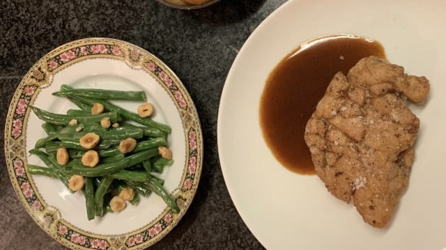 Ris de veau , asperges vertes, noisettes du Piémont.