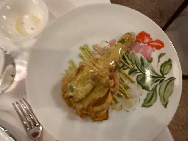 - Cervello fritto della macelleria "Calanchi", bietoline di campo, mostarda di Cremona e salsa rubra