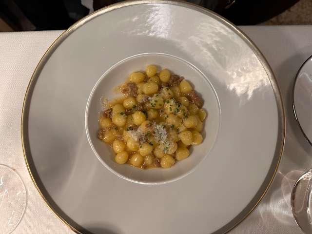 - Gnocchi di semolino alla "Romana", burro di montagna, pecorino e salsa al tartufo nero pregiato