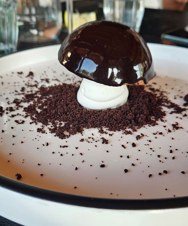 Tiramisù di baccalà mantecato, pane carasau e cacao amaro