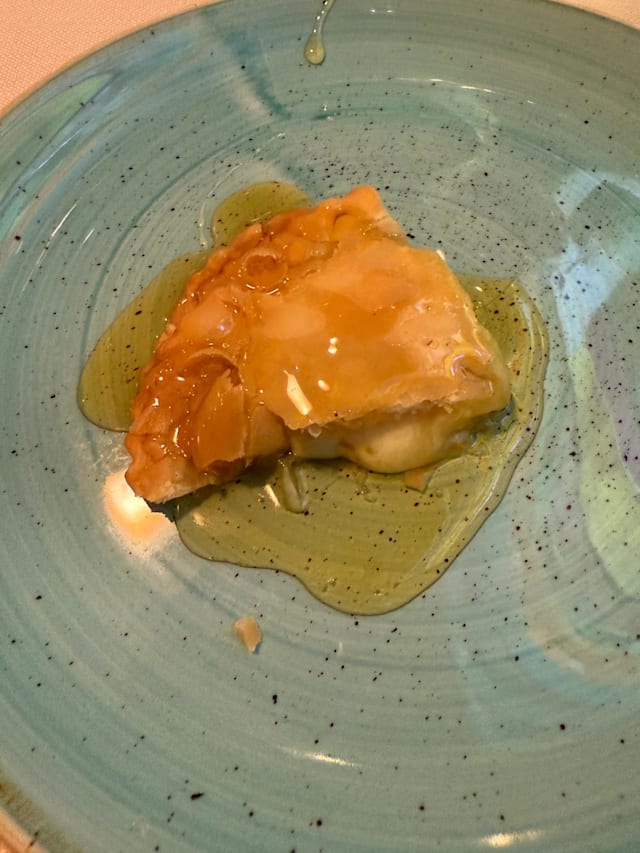 9/10We have been back to Osteria Molo 13 many times and the food is consistently delicious! Every single dish we ordered tasted so good. Warm antipasti come with generous portions, accompanied by scrumptious crispy pane carasau. We ordered the Rombo with potato and artichoke for two: extremely tasty. The zabaglione with little biscuits topped with coffee ice cream was the perfect end to a great meal. Service was courteous and prompt as usual. As the restaurant space is small, it tends to feel bit crowded when full (and it is always full when we go). Dining early and arriving before the main dinner crowd is recommended for a more spacious and tranquil meal.