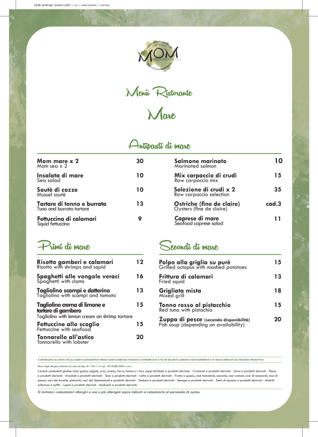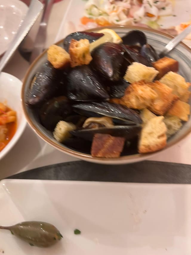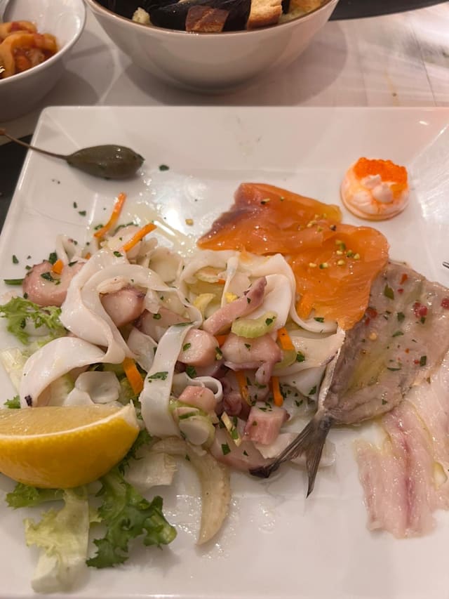 2/10We told the waiter that one was allergic to squid and he said ok for risotto with shrimps without squid. Of course the dish was with squid. He forgot one drink order. Pizza was not good, anti pasti (fried mozza and fried zucchini flower) thought to be frozen. Definitely not recommended