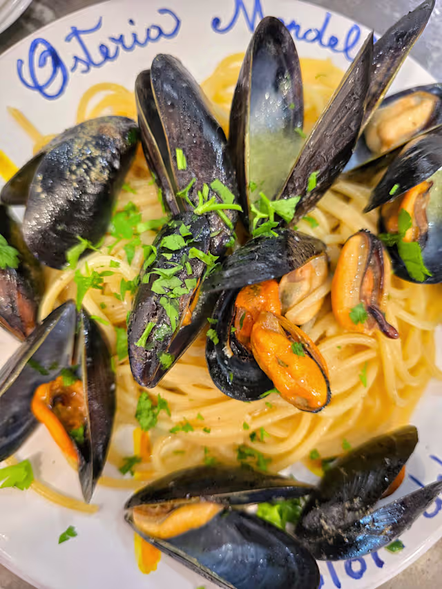 - (sarde, salsa, menta, caciocavallo, mollica di pane, uvetta, pinoli)