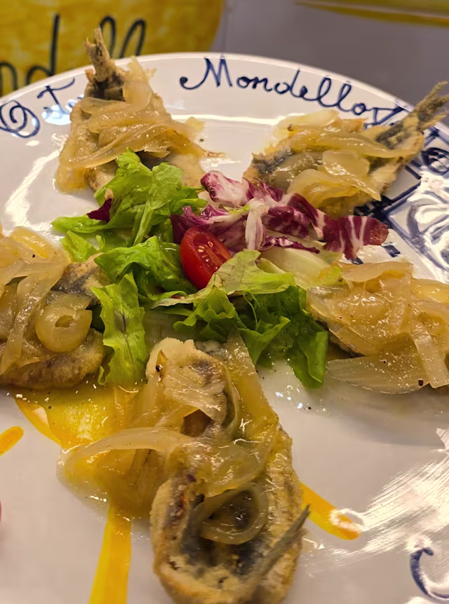 - (Sarde, cipolla, mollica, succo d'arancia, uvetta, pinoli, sale, zucchero, zafferano)