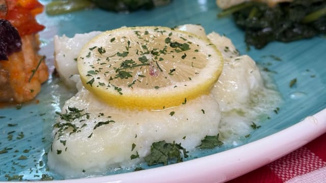 Bon bon di baccalà in tempura con friarielli, scaloppina di baccalà a limone, baccalà alla messinese, perla di baccalà con scarola alla napoletana