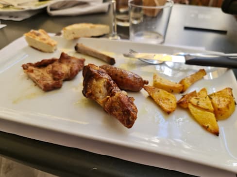 9/10Locally souced food. Traditional but with a twist like the semiprecious with peanuts and salty caramel. Pork ribs could be improved by slow cooking at low temperature. Refried "erba" very tasty.