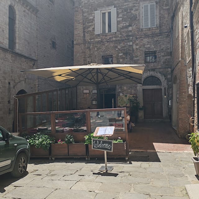 8/10Nice environment in small courtyard adjoining a piazza. I actually enjoyed my steak more than the florentine. Steak I had in Florence.. staff were friendly. We had our table all night and were not rushed. Would visit again if we return to Perugia.