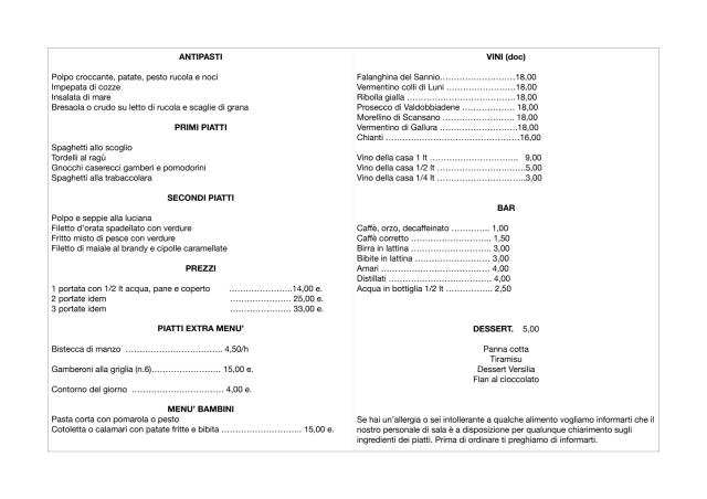 Otto tavoli è un' osteria informale che mira a soddisfare i clienti offrendo prodotti di qualità a prezzi contenuti. La cucina è prevalentemente di pesce ma offriamo anche un piccolo menù di terra. Offriamo pasta fatta in casa (gnocchi, ravioli, tordelli di carne, tagliolini).