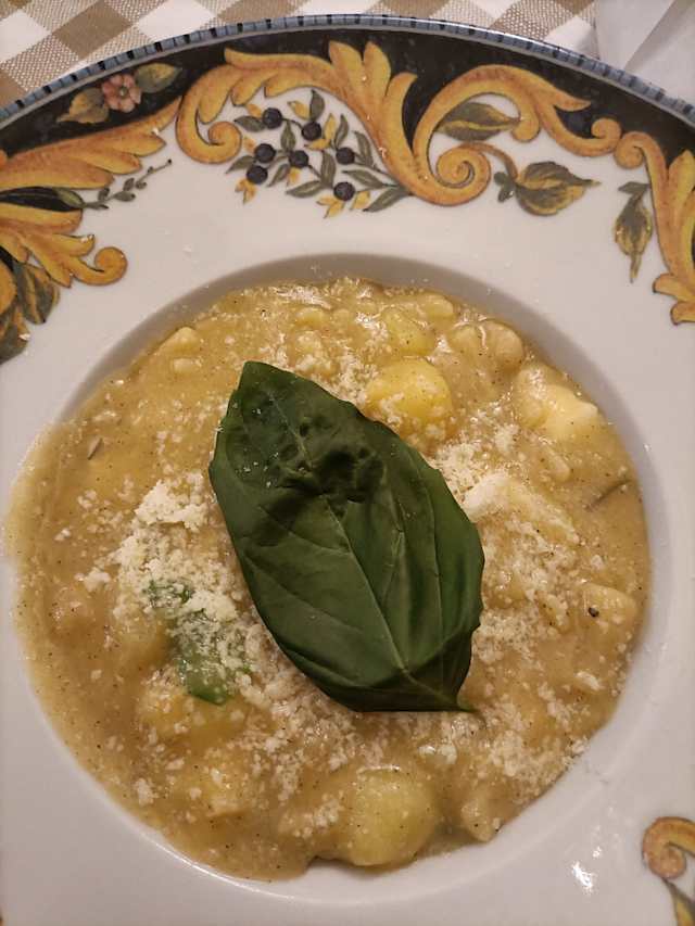 - (Gnocchi di patate, passata di pomodoro, fior di latte, basilico, grana padano, olio evo)