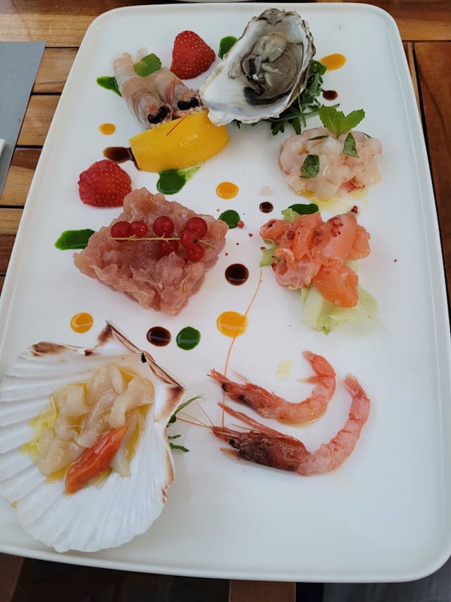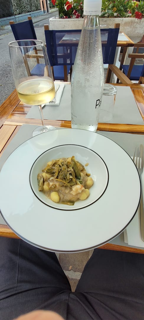 7/10It was raining, so we had to sit inside. The reception was somewhat unfriendly. The Osteria was empty, so we could choose one of the small tables. The Italian group that entered the restaurant after us was served before us. I had the impression that it became friendlier when I spoke Italian. The appetizers were very good, especially the raw fish. The main course was also very good. It stopped raining, and the Italian group moved outside. The tables filled up, and we felt left alone. I ordered another coffee and asked for the bill. In the end, we got a discount. Ultimately, it was a nice evening with very good food. Maybe the season has lasted too long already, and the staff is overwhelmed. We will definitely go back on our next visit to Venice.