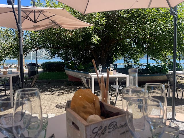 8/10We enjoyed a lot the experience in this restaurant. It is placed close to the lake and from all the seats you can enjoy a wonderful view of the landscape. When the weather is good you can also eat outside. Vincenzo helped us to find out the right dishes to eat and we appreciated his professional and funny way to manage everything. The dishes were good. We took a little taste of a variety of common fish there and they were delicious. The same with the first we have taken after that. Good even the list of wine. So, eventually a good place where to go not only for the food but also for the feelings. Very appreciated the idea to share plenty of different kind of breads.