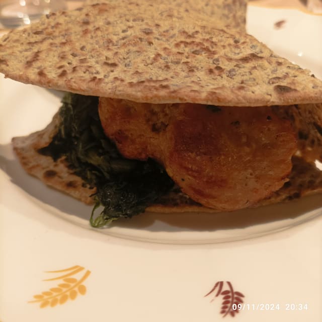 La Piadina IGP alla Riminese con ricciola, scarola ripassata, olive taggiasche, salsa al balsamico