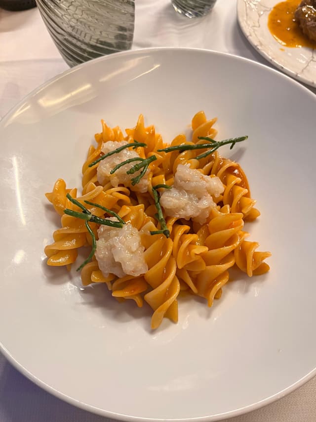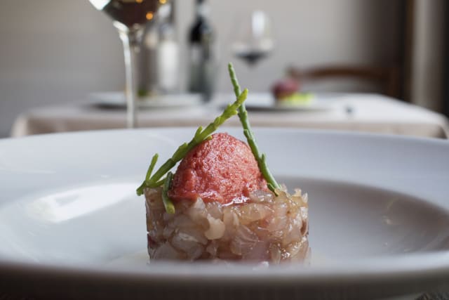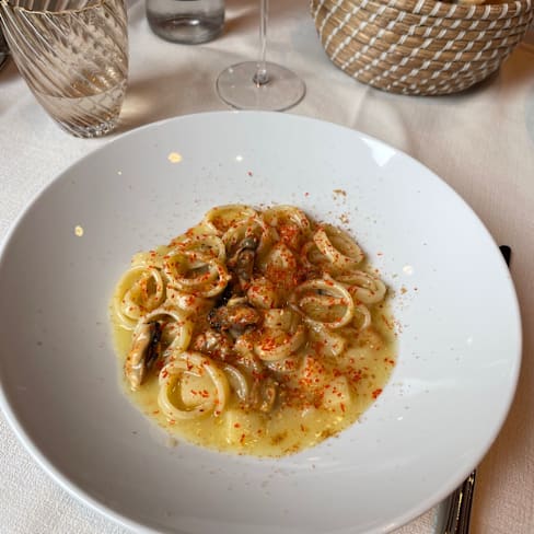 8/10chill nice atmosphere far from the city center. Offering water&wine was very quick but we had to wait so long to get the menu. Ricciola tartare had amazing flavor combination with onion sorbet. A little touch of fresh herb or zest might help it more. Wine pairing was very nice as well. Calamaro(?) pasta with mussel and potato was nice, very smooth and creamy but for be the proportion of potato was a little bit too much. It was hiding the mussel’s flavor. Maiale for the second dish was still nice but common and simple comparing to the first other two dishes. Normally people expect more for the second dish.. (when the antipasto was amazing the expectation grows) moreover the cooking stage wasn’t perfect. However the staff(or maybe owner) received the feedback and immediately reacted very kindly, actively. It wasn’t a perfect meal but I would revisit to experience other dishes.