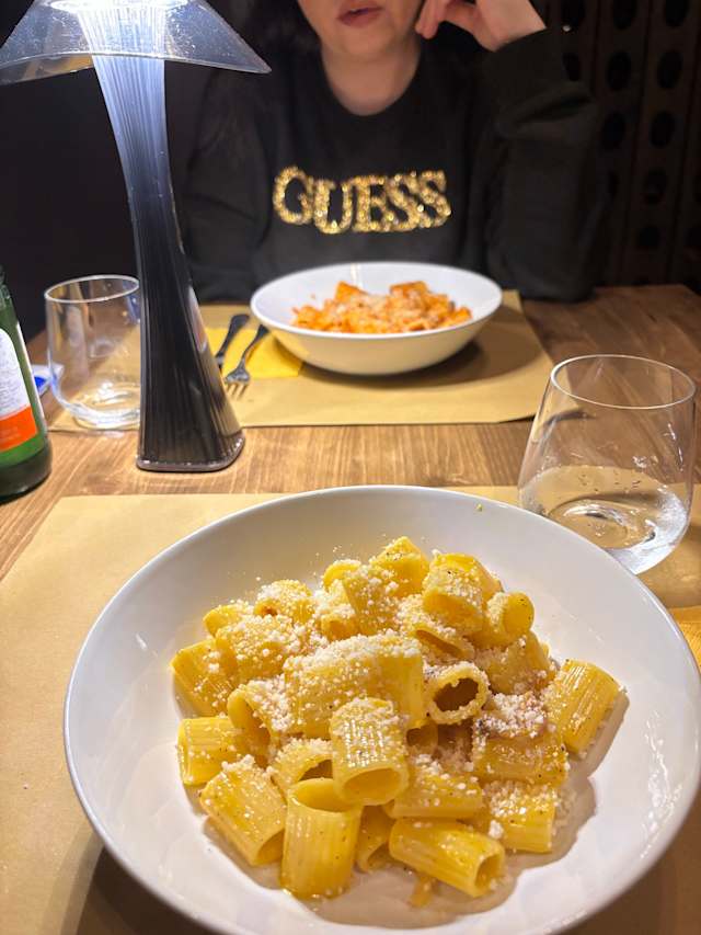 Avete pagato in 4 persone 138,20 € (con una gift card che vi è stata regalata da Thefork), con una bottiglia di vino da 40€ quindi 24,50 euro per persona e vi siete mangiati 1 tagliere misto, 3 focaccia, 2 carbonare da 150g a piatto, 2 saltimobocca, 1 polpette, 2 carciofi, 2 cicorie, 4 bottiglie d’acqua. Non so se ho dimenticato addirittura qualcosa. Ma che ve volete magnà ancora? Io capisco la stazza ma mi pare che di caro non ci sia nulla. Magari siete abituati a mangiare nella tramoggia. Suo marito quando ha pagato era felicissimo che era tutto buonissimo e veramente genuino. Lo sconto su the fork porta sempre purtroppo persone il cui senso critico è veramente distorto. Ripeto con 24,50€ a persona vi siete mangiati un sacco di cose di alta qualità con verdure coltivate da noi, farine e carni selezionate, uova ultra biologiche. Questi giorni data la grandissima affluenza è la 2a persona che ci scrive cose così, menomale che gli altri hanno più buon senso. Ha pagato 150g di carbonara 8,80€. Mah?!