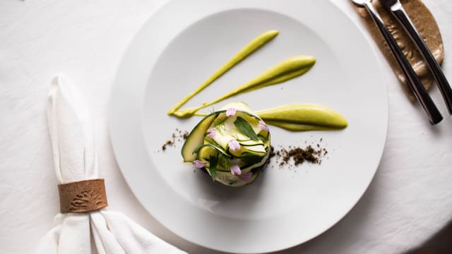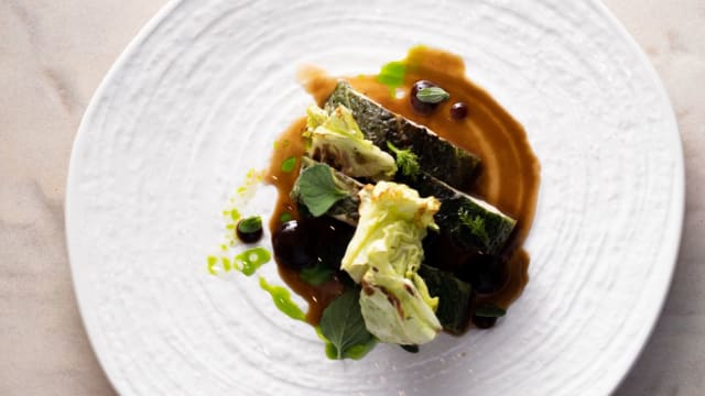 Ballottine di cefalo, alga nori, scapece di zucchine, battuto di menta