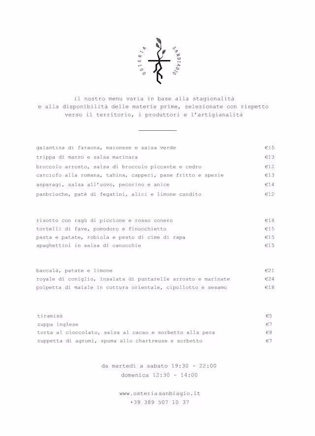 10/10Enjoyable dinner at Osteria San Biagio. We kicked off with the beef tartare in hazelnut sauce, followed by off-menu tender coratella and tagliolini al tartufo bianchetto (each bite bursting with flavor). My main course was a succulent beef flank in green peppercorn sauce, perfectly cooked. We sipped sparkling water and a glass of excellent local white, expertly recommended by the sommelier. To finish, we shared a creamy Basque cheesecake and a decadent chocolate éclair with strawberries, both divine. The dining room’s elegant, thoughtfully curated décor created an intimate atmosphere, and the service was flawless, warm, knowledgeable, and attentive.