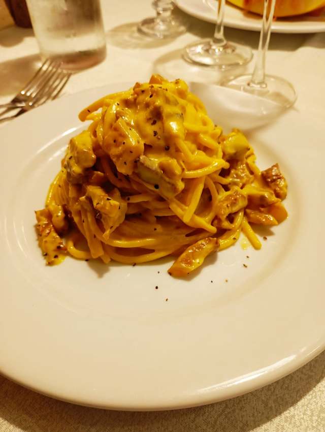 - Pasta all’uovo, pecorino, pepe nero