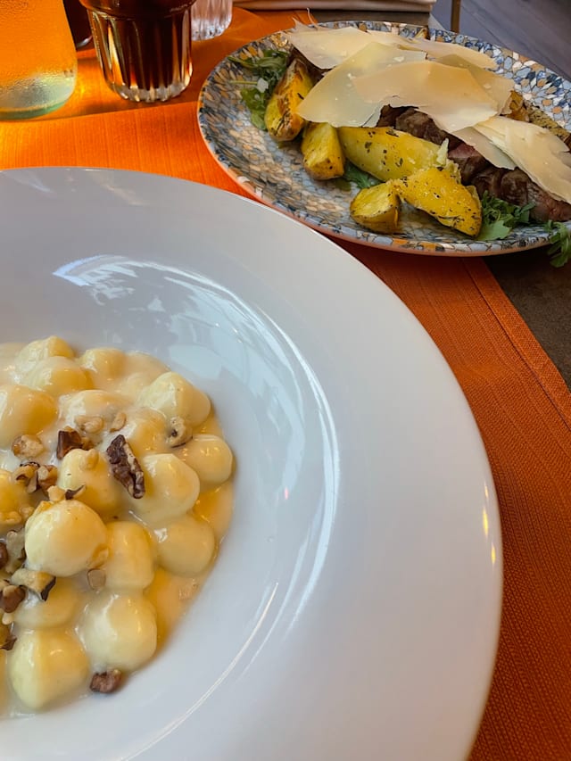 9.5/10Gnocchi with pear and walnuts was delicious. My companion and I shared the gnocchi and the meatballs on the patio. The charcuterie board on the table next to us looked incredible. We plan to order it next time. And the restaurant is across the street from the famous Vivoli gelato which made the perfect dessert. We will return!
