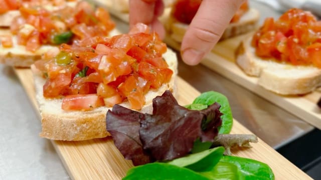 Bruschetta al pomodoro, cipolla di tropea e basilico