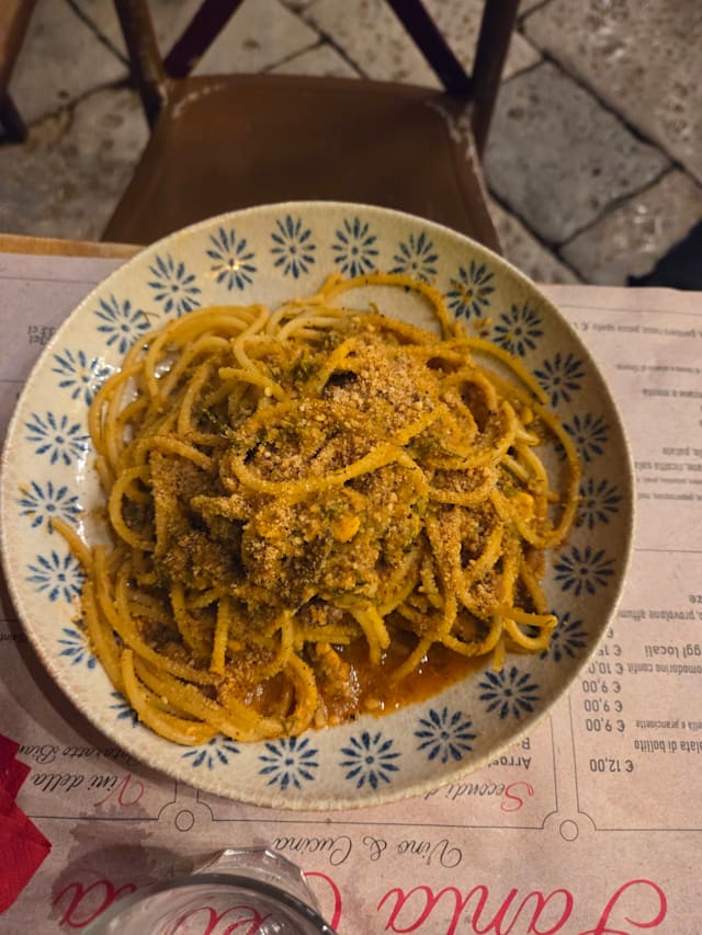 7.5/10very good restaurant for a dinner, good price-quality balance. the only thing I suggest to improve the pasta Santa Cecilia, sold as special plate but without any taste