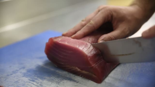 Tartare di pesce spada con salsa di pomodoro vergine,burrata e uova di lompo