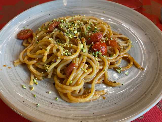 - Bigoli con le sarde di lago, pomodorini e pistacchio