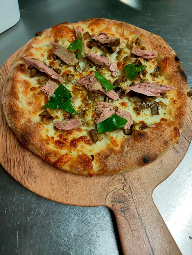 Mozzarella fior di latte, filetti di tonno pinna gialla, melanzane