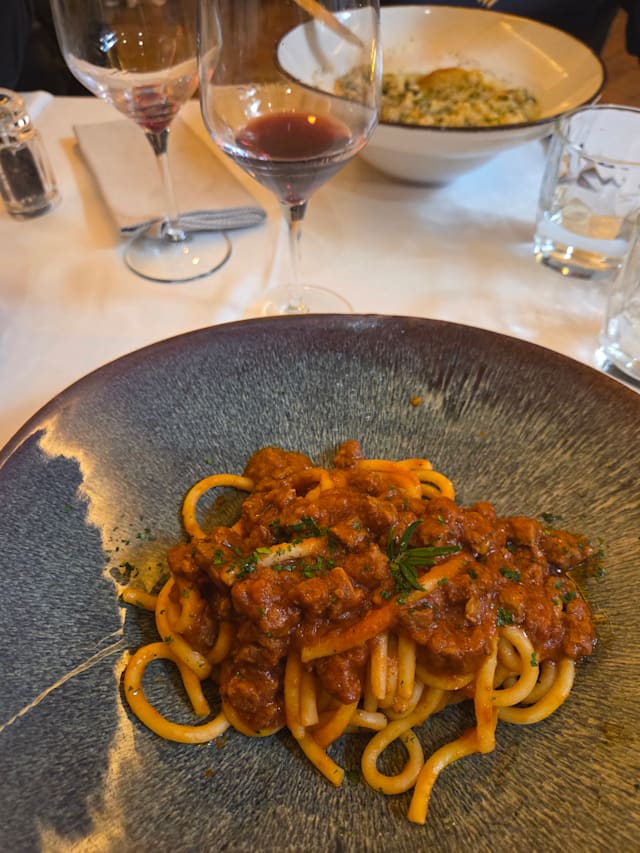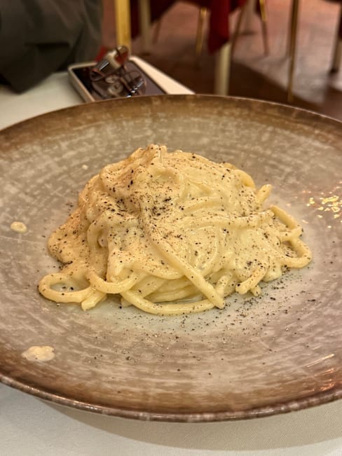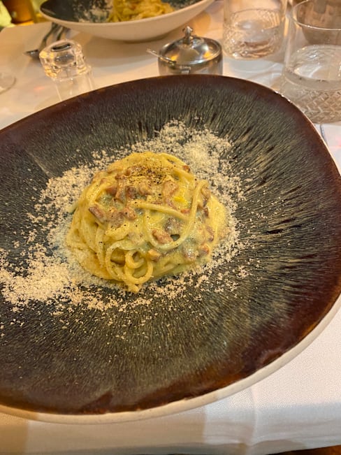6/10We realised later the highly priced aged red chosen to enjoy with a carbonara pasta to share as a starter, beef cheek main for my husband & osso bucco Fiorentina for myself, turned out to be wasted outlay. The wine alone being worthwhile. Looking nice isn’t enough .. our starter being thoughtfully plated separately,. & even if it was delivered attractively on warmed plates, which we appreciated . …. was barely taste-recognizable as the famed Roman classic egg yolk/ pancetta/ cheese delight it ought to be. Strike One. Both the mains lacked the rich definition they should have possessed …my osso bucco meat wasn’t luscious & my husband’s beef cheek similarly disappointing - neither with definitive texture/flavor..these dishes far too highly priced just under €30, + sides extra (!) & coupled with the exorbitant cover charge, this restaurant delivered overpriced & undistinguished food ..& we didn’t get our promised 20% discount adding insult to injury. Not Recommended. Seek better elsewhere