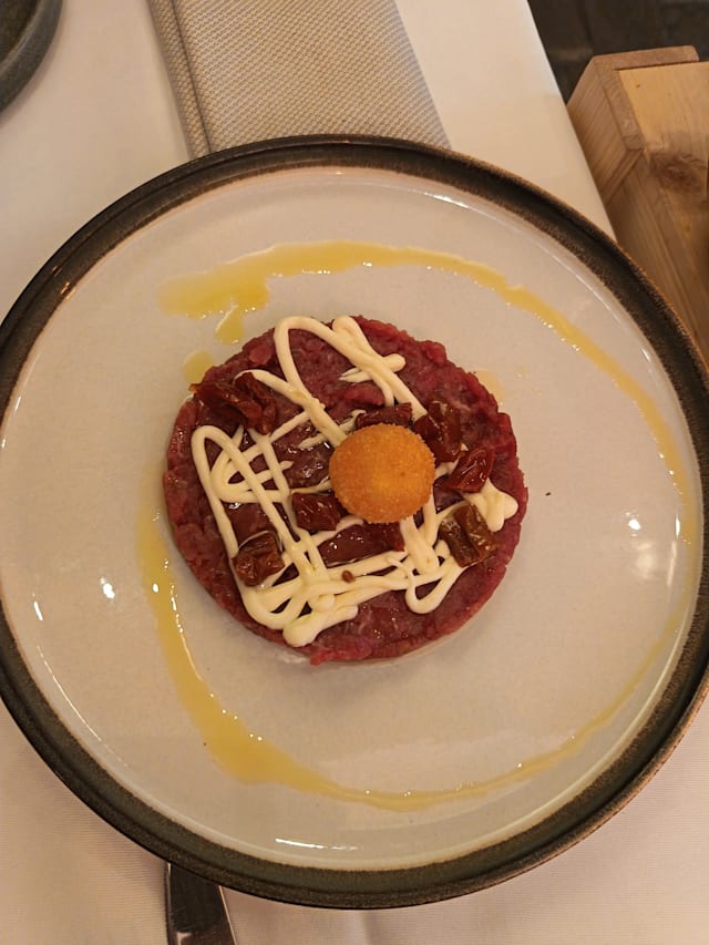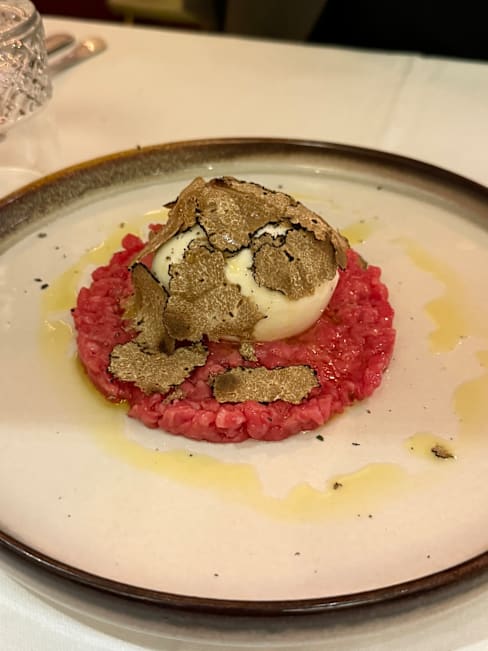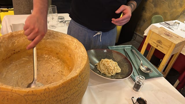 10/10Perfect from start to finish, one of the best meals we've had in Italy - we had the cacio e pepe, tbone steak and the steak tartare w burrata/truffles. 💯 recommend the pasta, cooked al dente and the cheese was just perfect for the pasta. Did not have super high expectations for dessert but were very impressed with the cheesecake berries. Service was friendly, kind and they accomodated us almost immediately even though we came in late. 10/10 would come back again 🙌