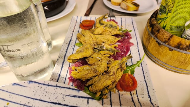 10/10The restaurant is in a nice location and has a nice Ambiente. The food was very fresh and the Portions were normal. The quality of the fresh food was very lovely, although the octopus wasn't cooked in a tender way. The service was very kind. Unfortunately they forgot our primi piati. But we were having enough with our the main course. The house wine syrah was very lovely and a good recommendation. All in all it was a lovely experience with qualitative good food a bit week in preparation.