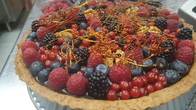 - (Riso venere, avocado, tartare di salmone, sesamo nero, passion fruit, kataifi)