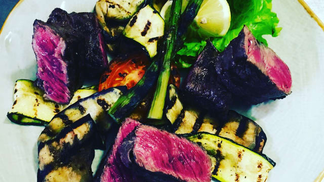 Tagliata di angus irlanda con EVO, sale maldon e balsamico