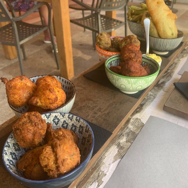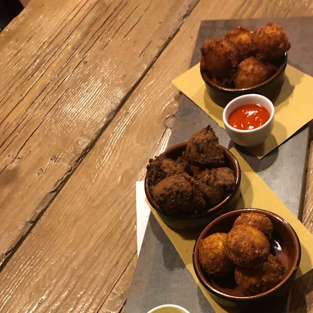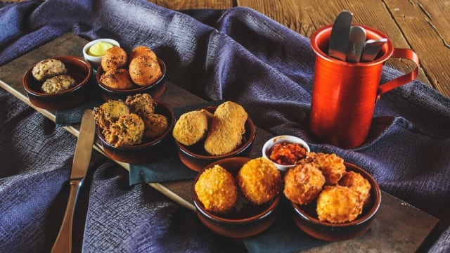 Degustazione di 8 polpette fatte in casa. Carne, pesce, ortaggi di stagione, salse fatte in casa contiene alimenti surgelati